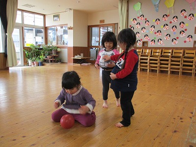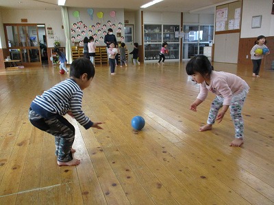 2021年01月28日 ボールを使って 2歳児 にじ ボールを使ってあそびました。 投げたり、蹴ったり、転がしたり。 お腹に入れてタヌキになりきる子もいます。 元気いっぱい走り回っていたこどもたちです。 一覧へ戻る