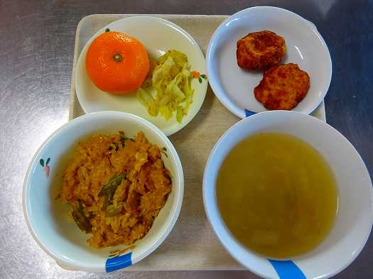 2021年01月29日 給食室(1月28日の給食、おやつ) 未分類 給食室 昼食 ・しのだごはん ・キャベツのもみ漬け ・粕汁 ・みかん おやつ ・豆腐ナゲット しのだごはんには、いんげんと油揚げ、ごまが入っています。 味つけは砂糖、みりん、酒、しょうゆとシンプルですが、 油揚げのうまみが出ているので、何杯もおかわりをする姿がみられましました。 粕汁に入っている鮭は、一度焼いてから入れると、あまり煮崩れしにくい為、 形が残ったままでした。 ほんのりと酒粕の香りがする、身体がほっと温まる一品でした。 一覧へ戻る