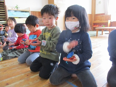 その後も、いろいろな楽器を使って、ゆきのこぼうずを、思い思いに演奏しています。