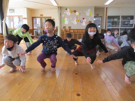 あひる、うさぎ、かめ、ロンドン橋をすると、みんなよく覚えて真剣に取り組んでいました。