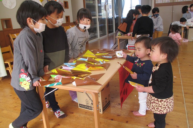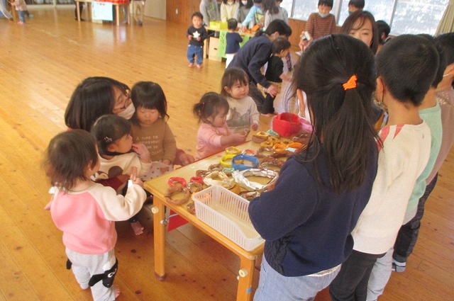 そらぐみが開いてくれた、お店屋さんに、手作りのお金を持って