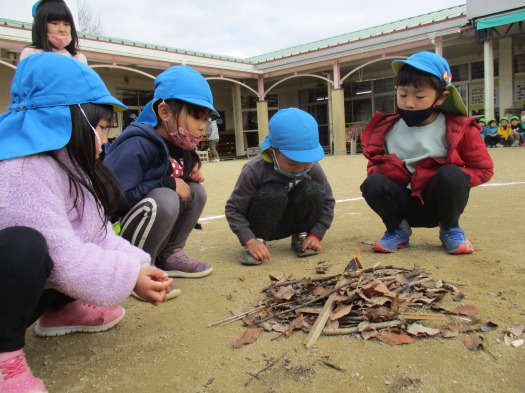保育者が火をつけて全体に火がまわると「ついたー」と嬉しそうでした。