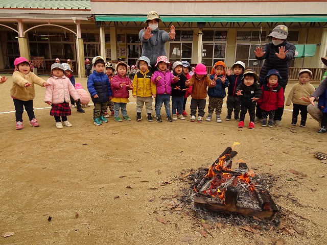 2021年02月19日 あったかいな♪ 0歳児 はな 1歳児 ゆき 焚火会では、幸せなら手をたたこうの歌に合わせて 身体を揺らしました。 焚火に近づくと、とても暖かく、 ほっとできた時間になりました。 一覧へ戻る