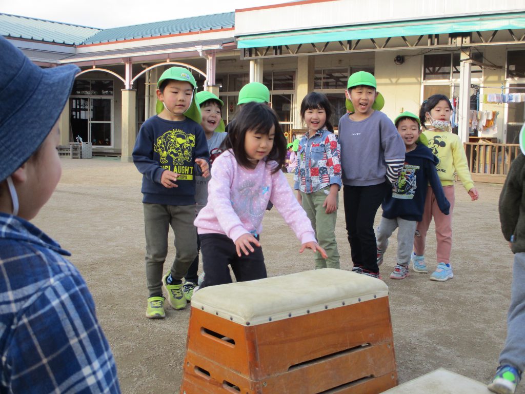 今回は、跳び箱を出しました。出すなり、すぐに列を作り「早くしたい」と言うほど楽しみにしている様子でした。