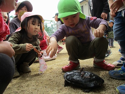 2021年03月22日 おはよう、かめさん 3歳児 つき 冬眠していたカメさんにみんなで「朝ですよ!」と教えてあげる日でした。 つきぐみ、ほしぐみ、にじぐみのみんなで迎えしました。 5匹のカメ全員起きることができました。 支援センター横に居るので、みなさんからも「おはよう」と声を掛けてあげててくださいね。 一覧へ戻る
