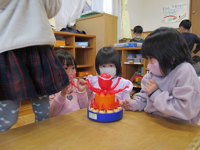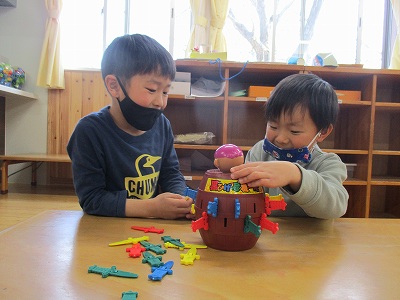 2021年03月25日 学童って何があるの? 5歳児 そら 小学校に行くことを楽しみにしています。 それ以外に、学童に行くことも楽しみのようです。 そこで、‟学童ってどんなところだろう” ‟何があるんだろう”ということで、学童の部屋に遊びに行きました。 学童の職員から、部屋での過ごし方やおもちゃの使い方を聞き、保育園にはないおもちゃに目を輝かせていました。 珍しい物がたくさんあって楽しかったね♪ 小学生になることが、ますます楽しみになったこどもたちでした。 一覧へ戻る