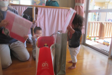 2021年03月26日 はな組ありがとう 0歳児 はな 一年間使った部屋を大掃除。 水で濡らした新聞紙で、床を拭きました。 そして、紙袋にアルバムや描画を入れてっできあがり。 来週からは、ゆき組で過ごす予定です。 最後の給食は、青空給食。春風や、ツバメの声を聴きながら 気持ちのいい食事となりました。 一年間ありがとうございました。はな組職員一同 一覧へ戻る