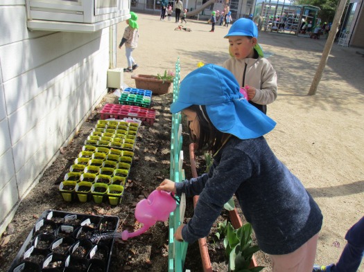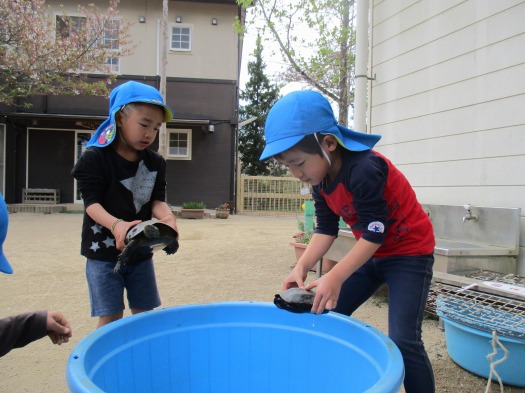 2021年04月23日 当番活動 5歳児 そら そらぐみになり、当番活動が始まりました。 6つのグループで順番に、カメの水替えの掃除、布団敷き、絵本の整理などがあります。 任されることが嬉しく、みんなそれぞれ責任をもって当番活動をすることができます。 これからもそら組として、たくさんの仕事や役割があります。 こどもたちが自分でできるところは任せ、自分たちで生活を進めていく力を身につけられるようにしたいと思います。 一覧へ戻る