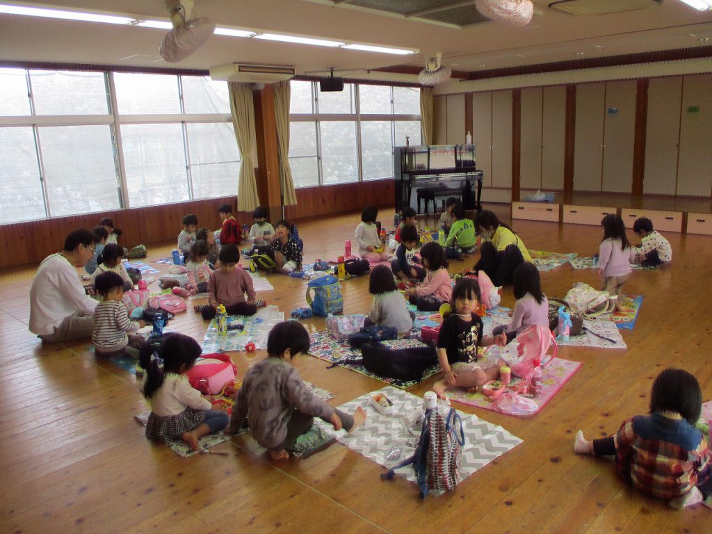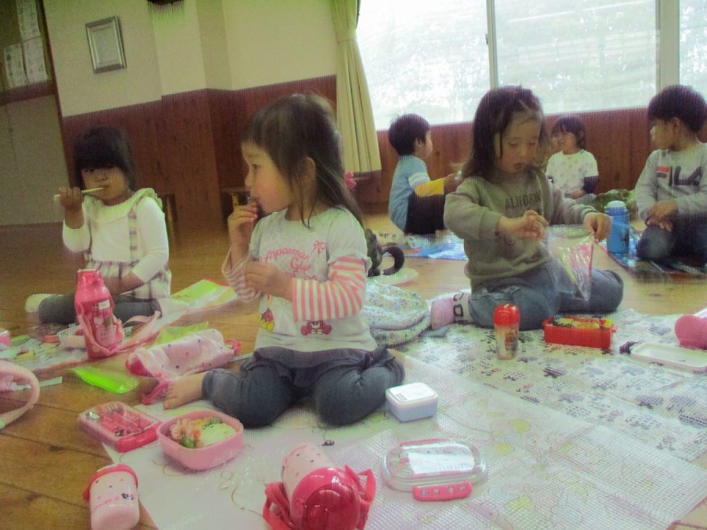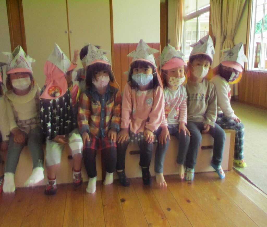2021年05月08日 兜をかぶって… 3歳児 つき 雨で健脚に行けなかったので、新聞で兜を作りました。 完成した兜をかぶって園舎内を歩き、健康で過ごせるよう願いました。 お昼は待ちに待ったお弁当。 ホールでシートを広げてピクニック気分です。 「見て」とお弁当の中身の自慢大会が開かれていました。 一覧へ戻る