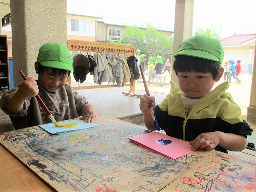 画用紙を折り合わせて開くと反対側に模様がうつると
