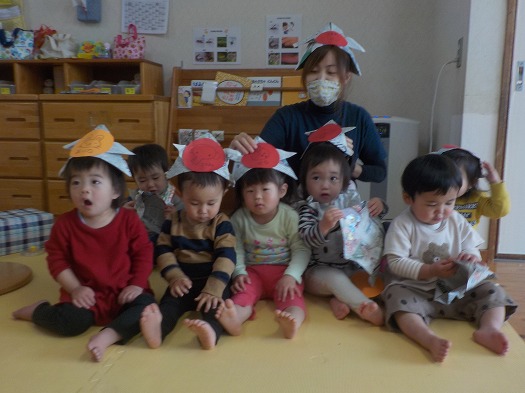 2021年04月28日 雨の健脚 1歳児 ゆき 室内で、新聞紙にシールを貼ってカブトを作りました。 完成すると、保育者の真似をして、自分の頭の上に 乗せたり、被ってみたりしていました。 弁当のご協力ありがとうございました。 一覧へ戻る