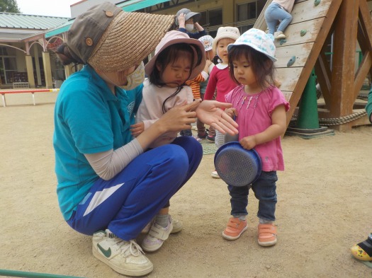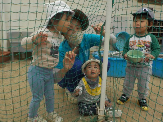 ゆきぐみがみていると、にじぐみも興味を示して顔を覗かせています。
