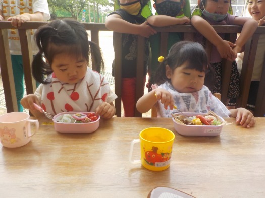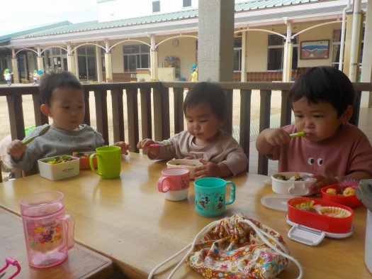 弁当の時間は、しっかり自分で口に運んで食べていました。