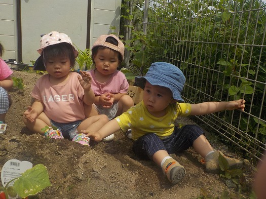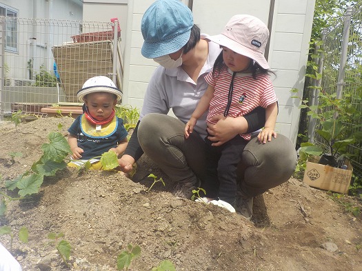 オクラの苗植えをしたよ
