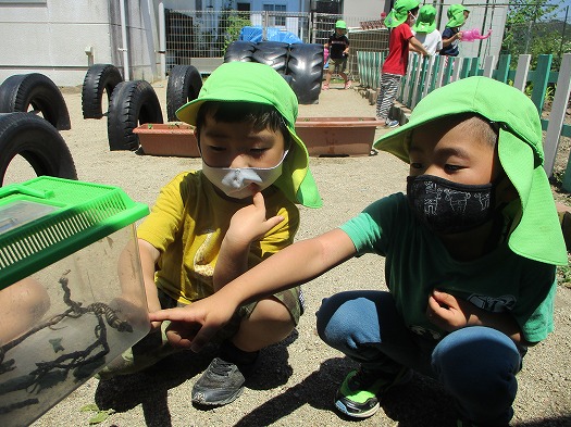 普段からダンゴムシやカマキリなどの虫を捕まえているそら組のAさんは