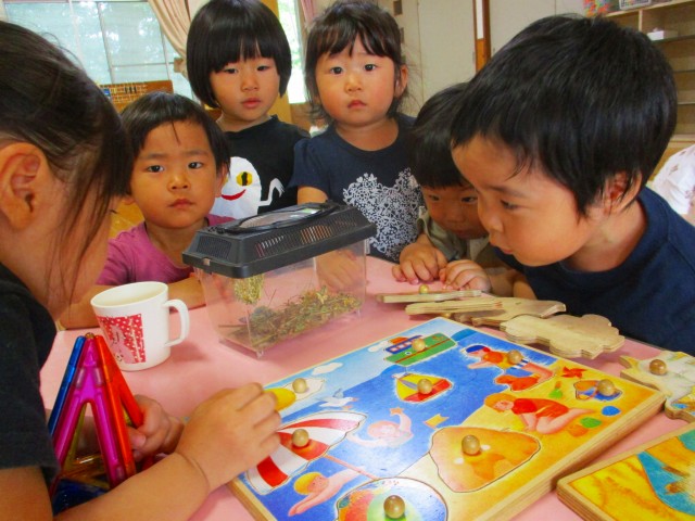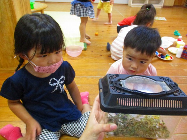 職員が捕まえてきたちょうちょを見ていたこどもたち。