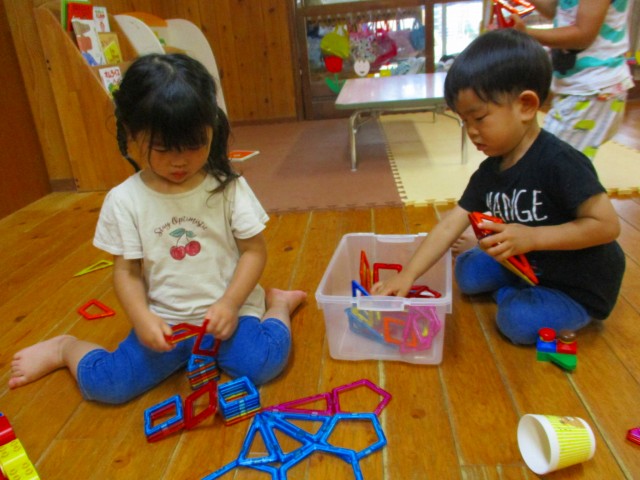 マグ・フォーマーという磁石のおもちゃでよくあそんでいるこどもたち。