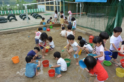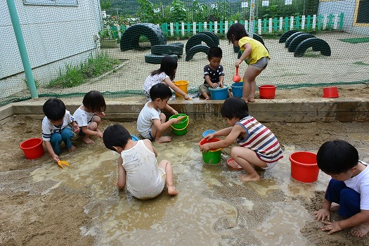 2021年07月15日 どろんこ 3歳児 つき われ先にとバケツに水を汲んで、砂場に川ができました。 まだまだ各々に遊び込む姿が多いつき組ですが、 少しずつ小人数で一緒に楽しむ姿が見られるようになってきました。 一覧へ戻る