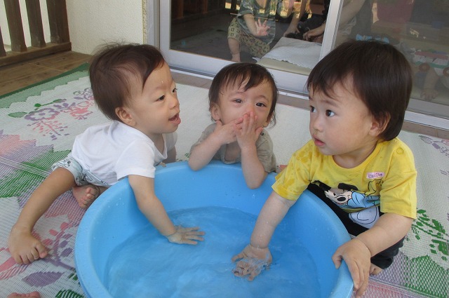 2021年07月27日 お水ちゃぷちゃぷ 0歳児 はな 今日はタライにぬるま湯を入れて触って遊びました。 最初からパシャパシャと触りに行く子、友だちの様子を見てから触る子など 様々な姿が見られました。 天気も良くて気持ちよかったね。またしようね。 一覧へ戻る