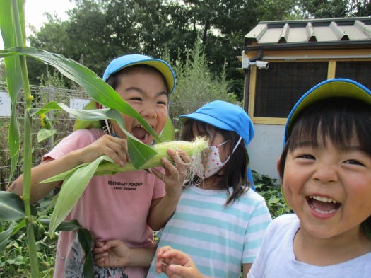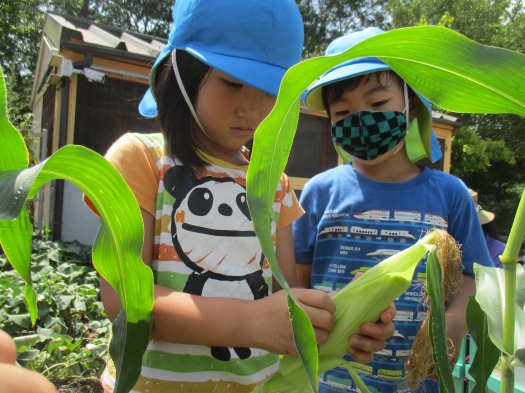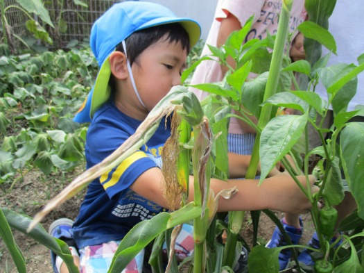 大きく育ったトウモロコシとピーマンを見て「まだ取らないの」と伝えてくる子もいました。