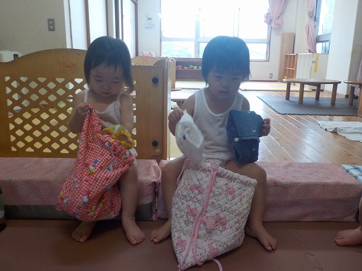 2021年08月12日 出せるかな? 1歳児 ゆき 午睡からの起床後、自分のパジャマ袋を持ってベンチに座ります。 パジャマ袋の中に手を伸ばし、準備していた服を出そうとします。 前までは、保育者がほとんど手伝っていましたが、 今では、一人で全部取り出すこともできるようになってきました。 一覧へ戻る