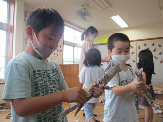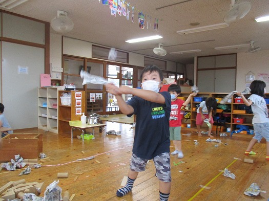 新聞紙を使って遊びました。