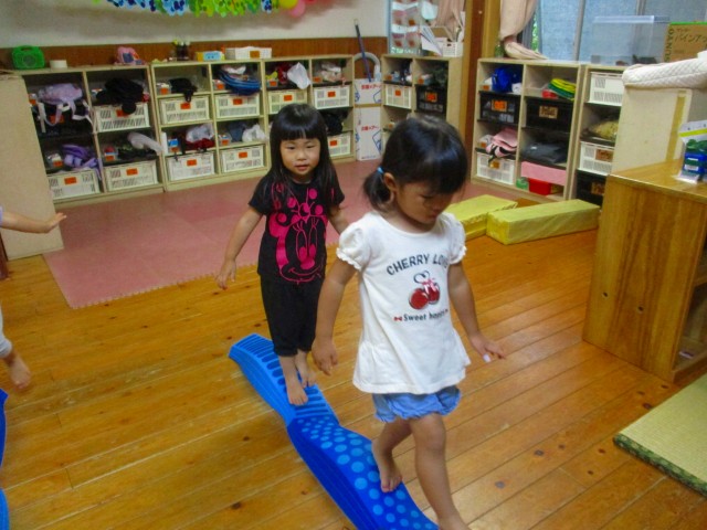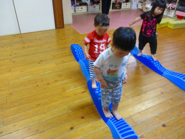 2021年09月03日 渡ってみよう 2歳児 にじ バランス平均台を部屋に出してその上を歩きました。 落ちないように「そーっと、そーっと」と言いながらバランスをとって渡っていたこどもたち。 そのうち慣れてくると、普通に歩いて渡れるまでになっていました。 一覧へ戻る