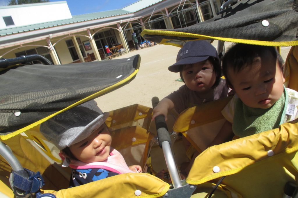戸外に興味津々で、周りをキョロキョロと見渡したり下にある花やカメをのぞき込んだりしていました。