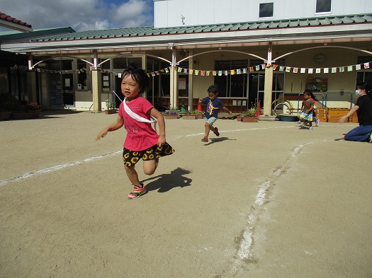 2021年10月04日 運動会予行 4歳児 ほし 運動会の予行をしました。 行進 しっかり手を振って リズム 思いっきり走ったよ かけっこ ゴールを目指して走ります 天気がよくて気温も高く、熱い中でしたが 跳んだり、走ったりして楽しんでいたこどもたちです。 他のクラスや園長、主任に見られてちょっぴり恥ずかしかったり、 緊張したりしていた子もいたようです。 今年こそは運動会当日も晴れてくれることを願っています。 一覧へ戻る
