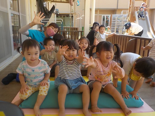 2021年10月07日 ヤッホー 1歳児 ゆき 園庭で、運動会の遊びをしている、大きなクラスを応援し、ちょっと一休み。 マットにロングクッションを二列置くと、すぐさま、集まり座っていました。 あまりの可愛さに、パチリ。素敵な笑顔が撮れました。 一覧へ戻る