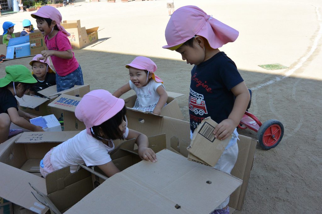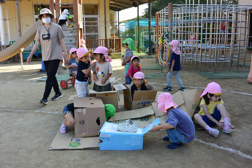 2021年10月07日 段ボール 3歳児 つき 園庭に置いた段ボールで各々にあそび始めるこどもたち…。 車になったり、お家になったり、思いおもいのあそびから 徐々に会話が弾み、ごっごあそびに発展します。 友だち同士で膨らむかかわりに心和むひとときです。 一覧へ戻る
