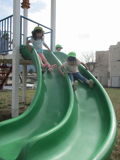 今回の目的地、にじの公園ではすべり台やブランコなどの遊具で遊んだり、