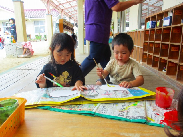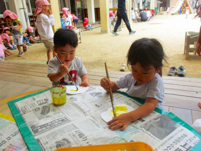 2021年10月18日 絵の具を使って・・・ 2歳児 にじ 絵の具でかぼちゃの形をした画用紙に色を塗りました。 白いところがなくなるまで塗っていたこどもたち。 塗ることができると「できたー」と伝えていました。 一覧へ戻る