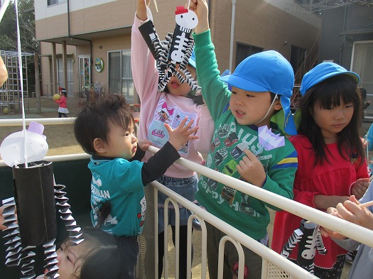 そら組は、以前作ったがいこつくんをもっていざ園庭へ!