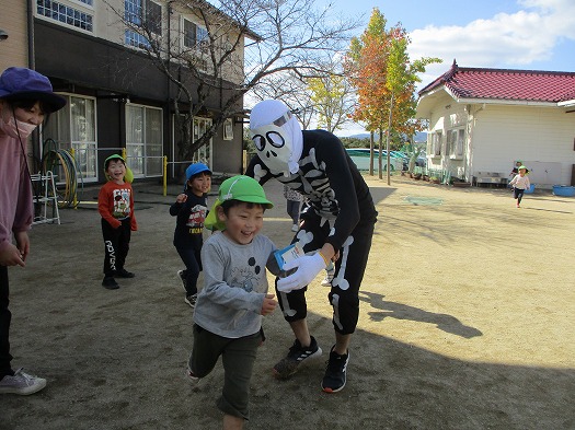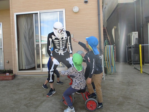 また違う日には、園庭にかぼちゃおばけやガイコツが登場。