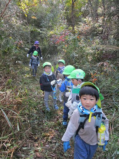 散策では山を下りながら栗や色鮮やかな落ち葉を拾いました。