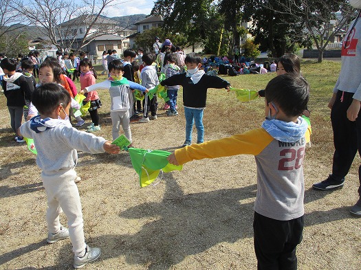 東4丁目グランドでは、あすなろ保育園のほし組と一緒にしっぽとりや