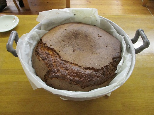 できたてのふわふわのカステラにホイップと果物をのせて食べました。