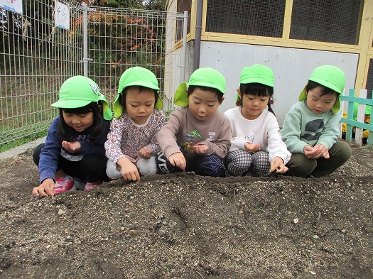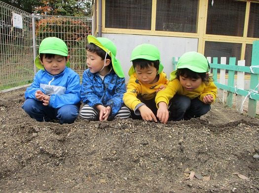 2021年11月12日 大きくなぁれ! 4歳児 ほし 畑にほうれん草の種をまきました。 ほし組はうねが2つあるのでラムネグループと キャンディーグループに分かれて植えました。 小さな種を落とさないようにそっとまいていたこどもたち。 どっちのグループが先に芽が出てくるかなと楽しみにしています。 おいしいほうれん草がたくさんできますように。 一覧へ戻る
