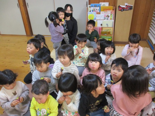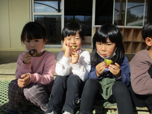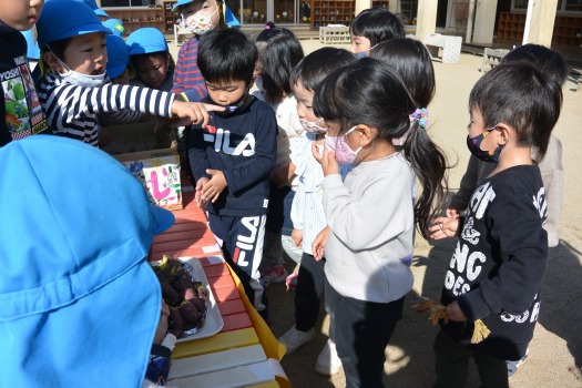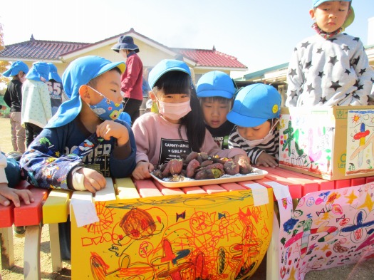 2021年11月22日 やきいもパーティー 0歳児 はな 1歳児 ゆき 2歳児 にじ 3歳児 つき 4歳児 ほし 5歳児 そら おしらせ クラス やきいもパーティーをしました。 そら組が焼いも屋さんになって配りました。 各クラスそれぞれ貰うとおいしそうに食べていました。 おかわりが欲しいというほど評判でした。 いらっしゃいませ。どれにしますか ホクホクでおいしい♪ どれにするか迷うな みんなで食べるとおいしいね おかわりあるかな? おいしい♪まだ食べたいよ 一覧へ戻る