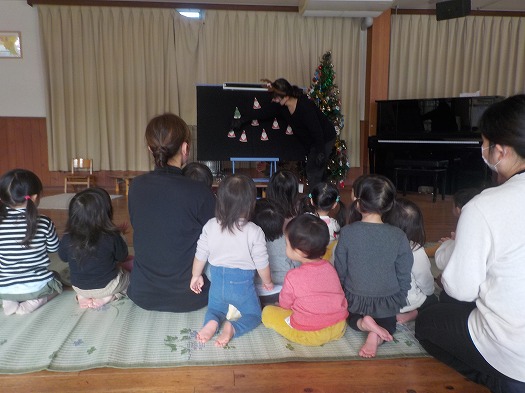 2021年12月10日 クリスマス パネルシアター 1歳児 ゆき 真っ暗な部屋で、ブラックライトに照らされ、光っているサンタに 夢中でした。星や、ベル、クリスマスの 鼻歌に鈴の音と落ち着く雰囲気でした。 一覧へ戻る