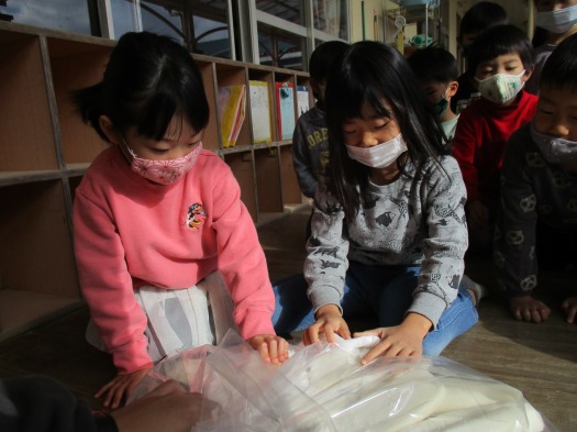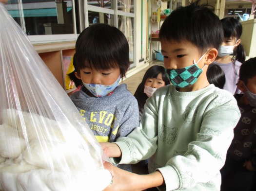 「暗い所にしばらく置いておくと、大根からどんどん水が出てくるんだよ」と教えてもらい、そら組の部屋の押し入れの中で眠らせています。