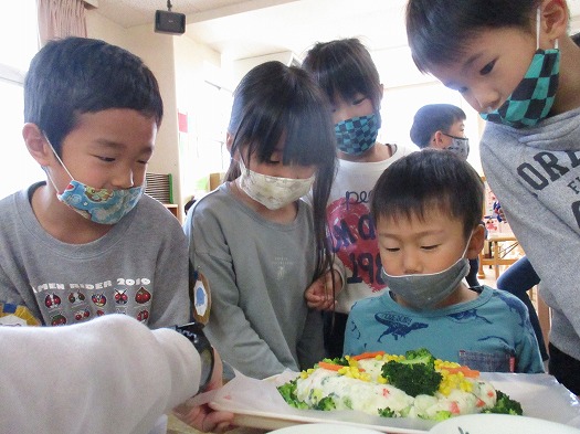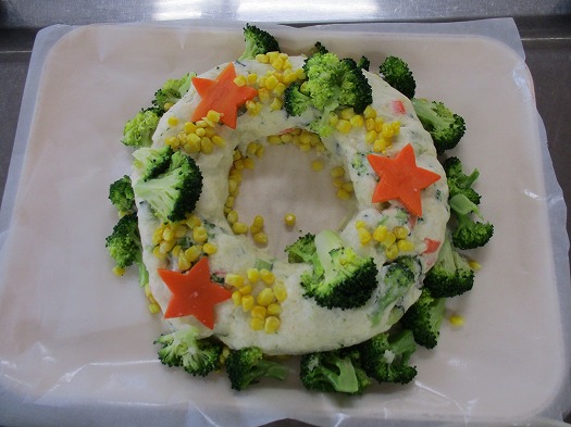 2021年12月17日 リースの形の… 5歳児 そら 今日の給食は誕生日メニュー。 サラダがリースの形になっていました。 「お星さまが乗っとる」「かわいい」と大好評。 いつもよりよく食べていたこどもたちでした。 一覧へ戻る