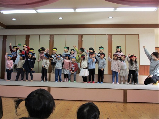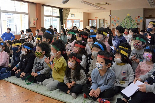 2021年12月18日 発表会予行 3歳児 つき 12月25日の発表会を前に舞台で予行を行いました。 全園児が見守る中で、ちょっぴり緊張気味のこどもたちでしたが ほどよい緊張感の中で、楽しく劇あそびを披露することができました。 何を考えながら観ているのでしょう!? 他クラスの発表を食い入るように見守るこどもたちです。 一覧へ戻る