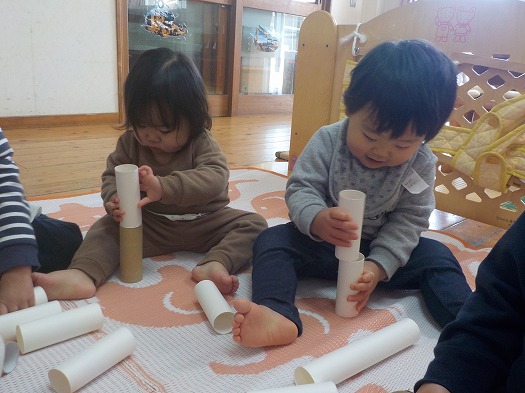 次々に手にし、積み重ねたり、眼鏡にしたり、通してみたり、叩いてみたり…