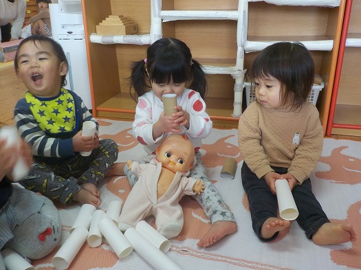 トイレットペーパーの芯を置いていると、