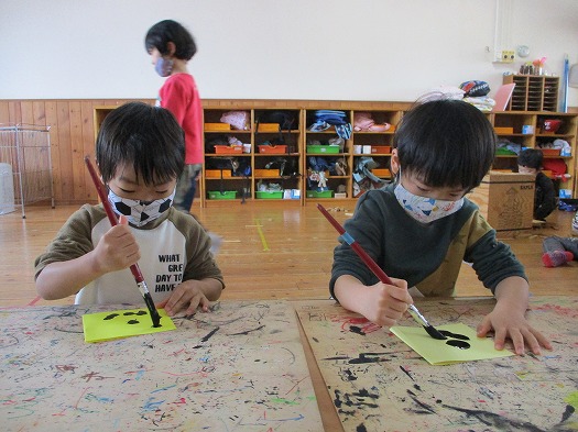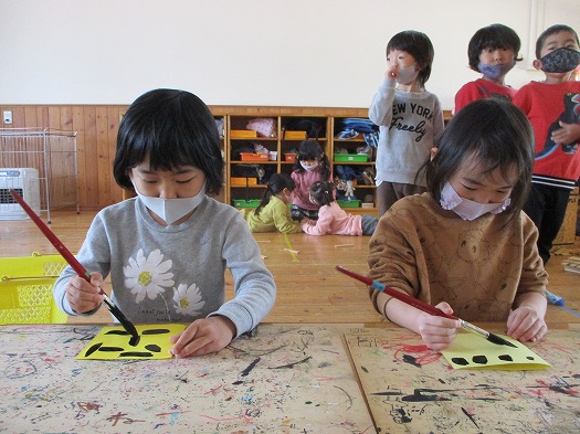 2022年01月28日 鬼のパンツは~♪ 4歳児 ほし 鬼の顔に引き続き、今度は鬼のパンツを作りました。 「鬼のパンツってどんなパンツ?」とこどもたちに尋ねると 「黄色と黒のパンツ」「トラのパンツ」と 『鬼のパンツ』のうたを思い浮かべている子もいるようでした。 今回はこいのぼりや万国旗を作った時にも用いた“デカルコマニー”という技法でパンツの模様をつけました。 完成したパンツは2月のホールの壁面になります。 どんなパンツができあがったのか、お楽しみに! 一覧へ戻る