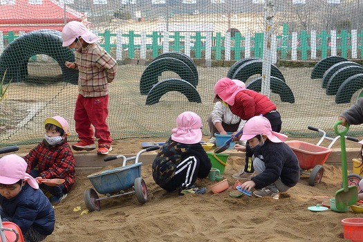 ままごとや穴ほり、型抜きに道路工事と思い思いに