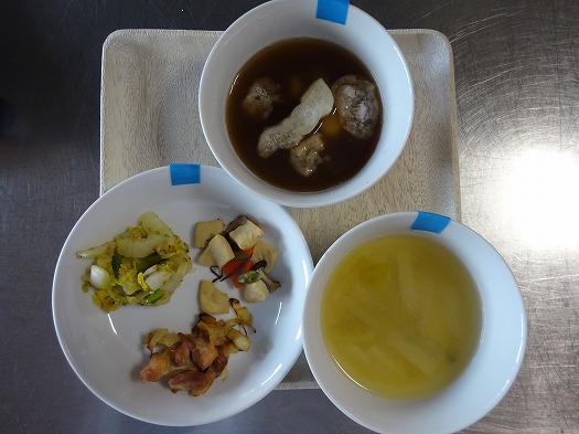 2022年02月08日 給食室(2月7日の給食、おやつ) 給食室 昼食 ・ごはん ・鶏肉の生姜焼き ・高野豆腐の煮物 ・白菜のごま酢和え ・大根のみそ汁 おたのしみおやつは『ぜんざい』でした。 保育園ではあんこなどは使用せず、小豆からぜんざいを作っています。 小豆と同量の砂糖をいれ、ちょっぴり塩も加えます。 味の対比効果により、塩を加えることで甘さが引き立つようになります。 手作り白玉団子の他に、以前、保育園でついたお餅も入れ込みました。 一覧へ戻る