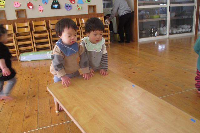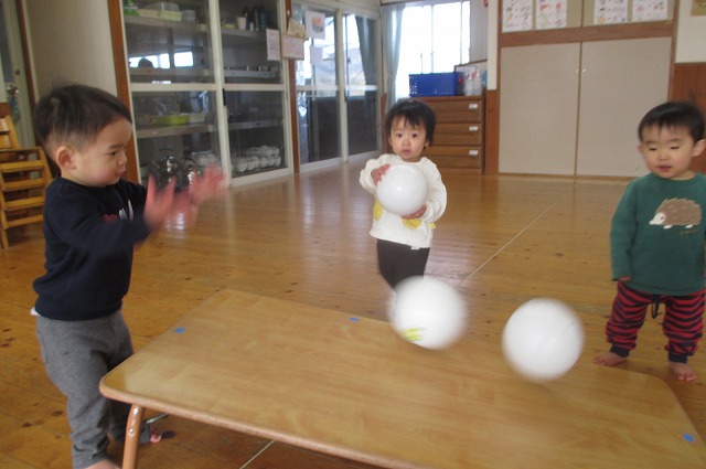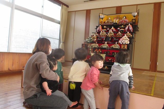 2022年02月09日 ホールで遊んだよ 0歳児 はな 久しぶりにホールに遊びに行きました。 最初にひな人形の前に行くとこどもたちは釘付けで、 指さしをして何かを見つけたり喋ったりしながら鑑賞を楽しみました。 その後はリズムやボールを投げたり転がしたりして 身体を動かして遊びましたよ。 一覧へ戻る